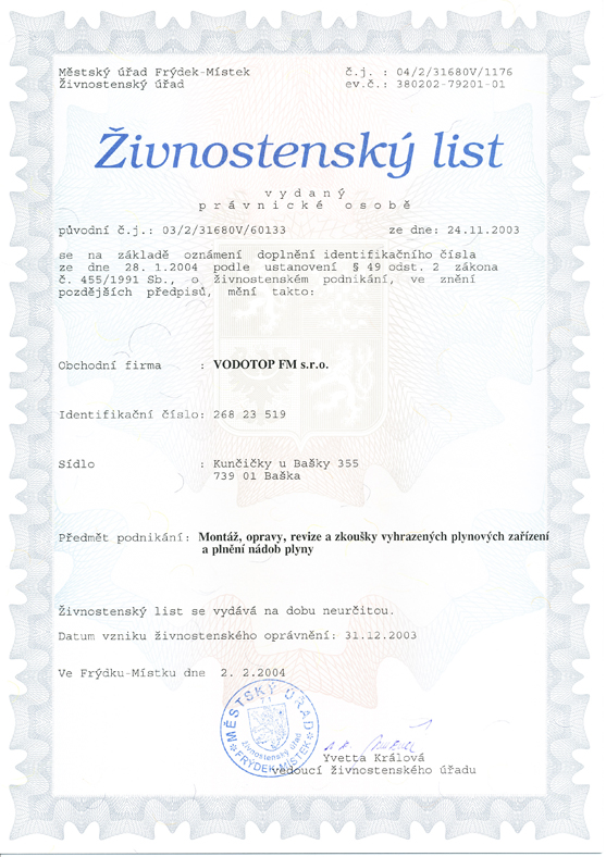 Montáž, opravy, revize a zkoušky vyhrazených plynových zařízenía plnění nádob plyny